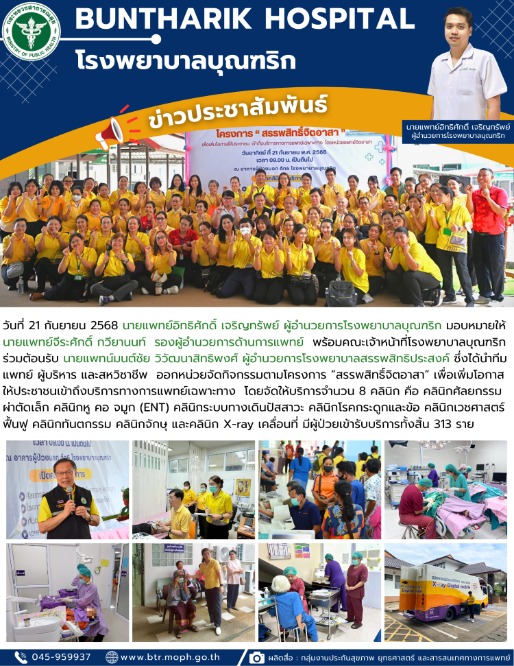 (12 มิ.ย.68) 09.00 น.ว่าที่พันตรี อดิศักดิ์ น้อยสุวรรณ ผู้ว่าราชการจังหวัดอุบลราชธานี เยี่ยมให้กำลังใจ เจ้าหน้าผู้ปฏิบัติงาน หน่วยคัดกรองมะเร็งเต้านมโดยเครื่องเอกซเรย์เต้านมเคลื่อนที่ (Mammogram) สำหรับสตรีกลุ่มเสี่ยงและด้อยโอกาส ในโครงการเฉลิมพระเกียรติพระบาทสมเด็จพระเจ้าอยู่หัว เนื่องในโอกาสพระราชพิธีมหามงคลเฉลิมพระชนมพรรษา 6 รอบ วันที่ 28 กรกฎาคม 2567 พร้อมโครงการคัดกรองมะเร็งนรีเวช ณ พื้นที่อำเภอบุณฑริก จังหวัดอุบลราชธานี